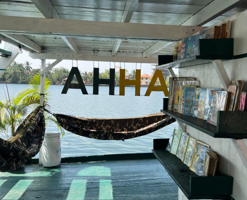 Situated aboard the AHHA Floatel on the serene Kampot River, the AHHA Library is a completely free community space to read, relax, and unwind. We are dedicated to encouraging a culture of reading, offering locals and visitors alike a peaceful environment to simply enjoy a good book.